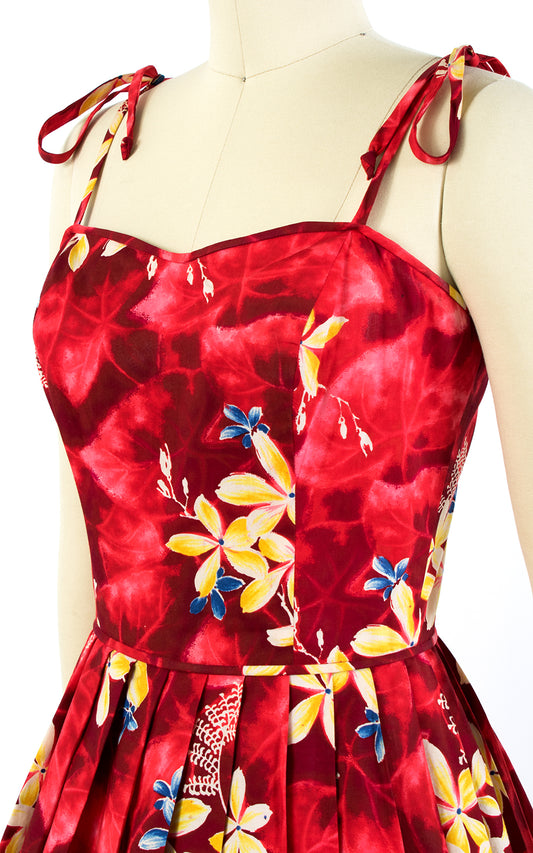 1950s Kamehameha Plumeria Hawaiian Red Cotton Sundress | small