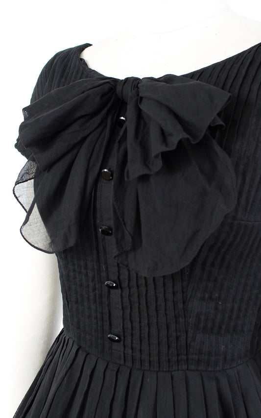 1950s Black Pintuck Cotton Voile Dress with Big Bow | small/medium