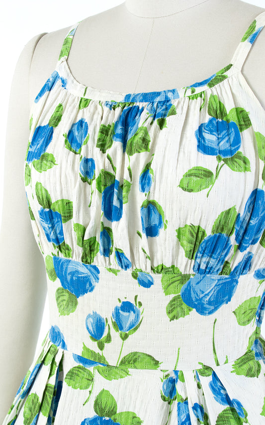 $50 & UNDER SALE || 1950s Floral Tie Straps Cotton Sundress | small