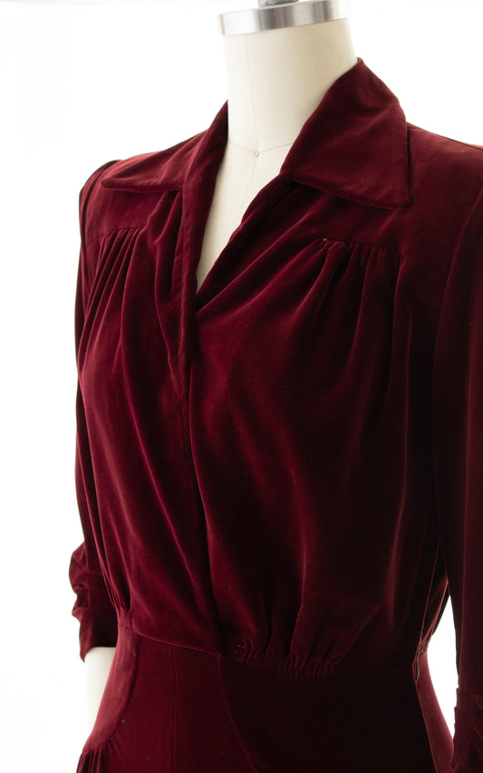 1940s NEW YORK CREATION Burgundy Velvet Dress | small