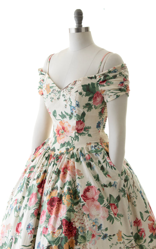 1980s KARIN STEVENS Romantic Floral Dress | small/medium
