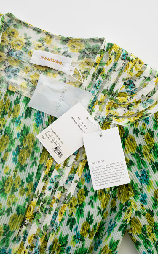 Modern ZIMMERMANN Deadstock Pleated Floral Dress | x-small/small