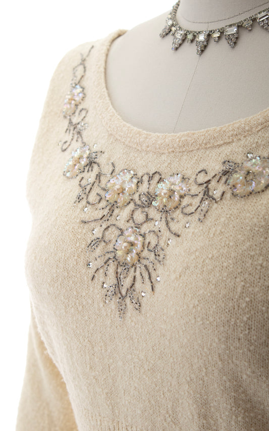 1950s Beaded Knit Wool Sweater Dress | small/medium