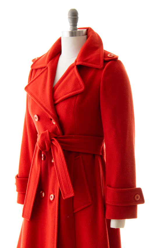 1970s DEADSTOCK Red Wool Belted Trench Coat | x-small/small