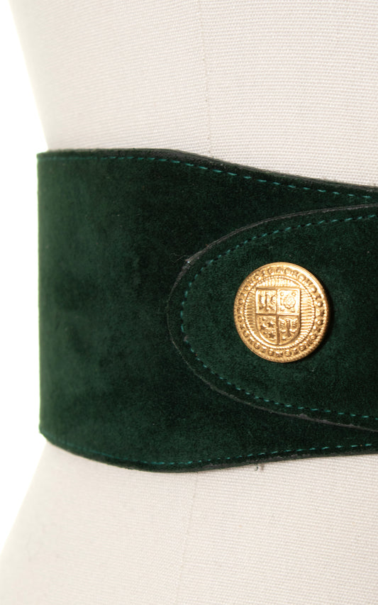 1980s Buttoned Forest Green Suede Cinch Belt |small/medium