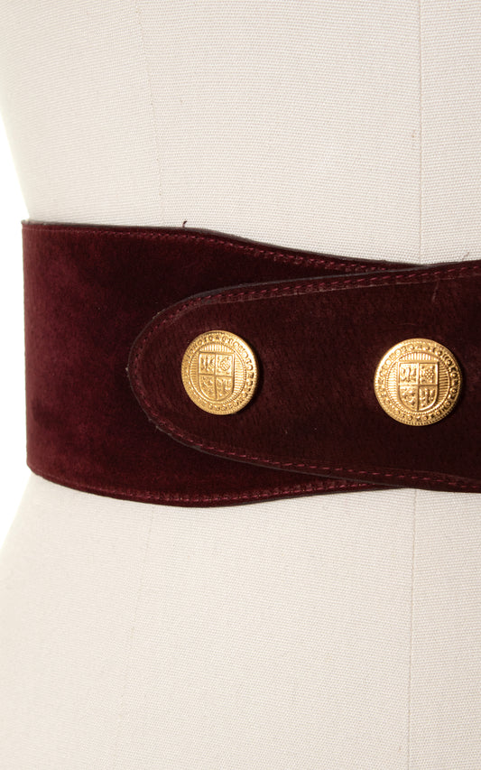 1980s Buttoned Burgundy Suede Cinch Belt | small/medium
