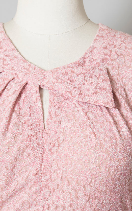 π SPRING CLEAROUT π 1940s Pink Floral Mesh Rayon Wiggle Dress | medium