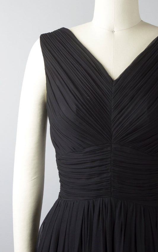 1950s Silk Chiffon Ruched Cocktail Dress | x-small/small