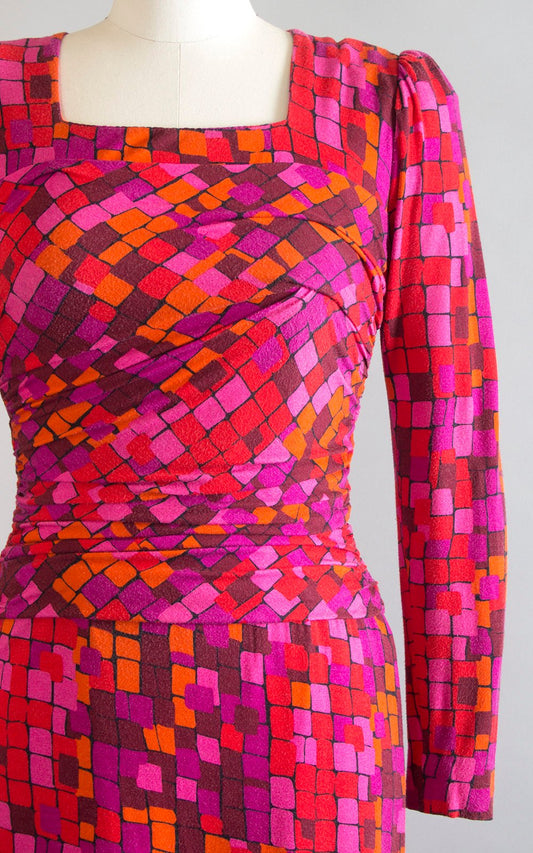 π SPRING CLEAROUT π 1980s Mosaic Wool Silk Jersey Draped Wiggle Dress | small/medium