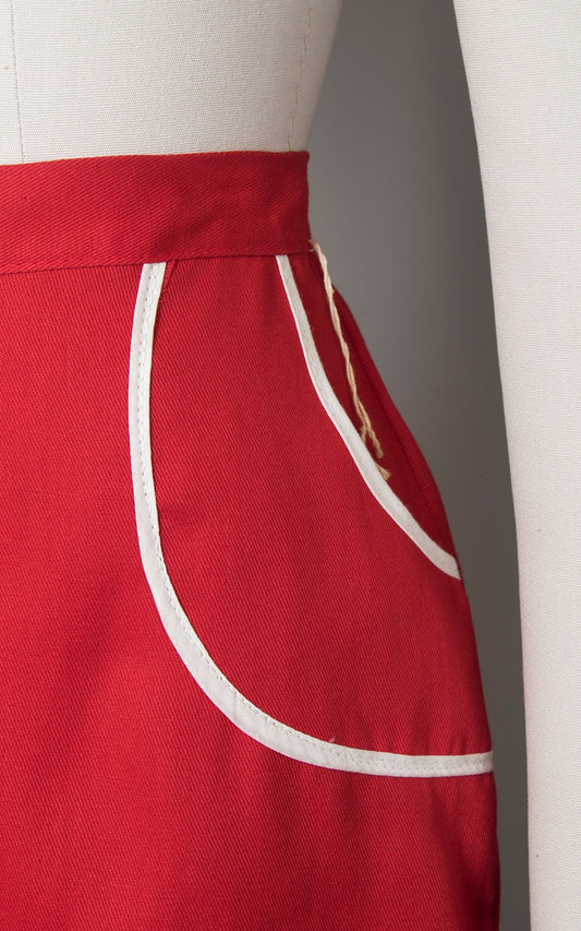 Deadstock 1940s Red Cotton High Waisted Shorts | small