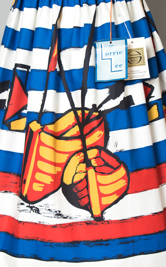 Deadstock 1950s Sailboat Novelty Print Striped Cotton Sundress | medium