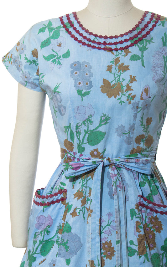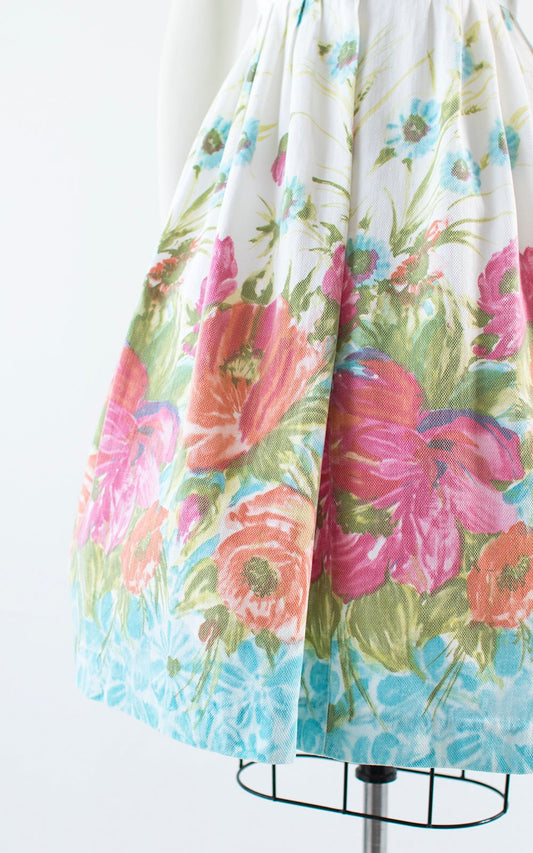 1950s Floral Border Print Cotton Shirt Dress | medium