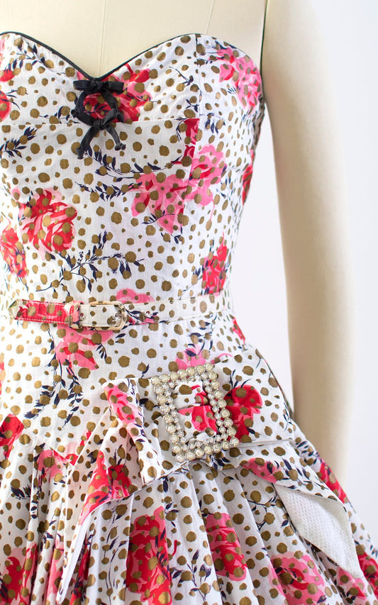 1950s Metallic Polka Dot Rose Strapless Sundress | x-small