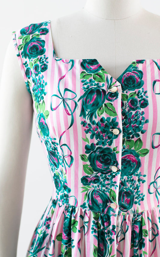 1950s Floral Striped Bow Print Cotton Sundress | small