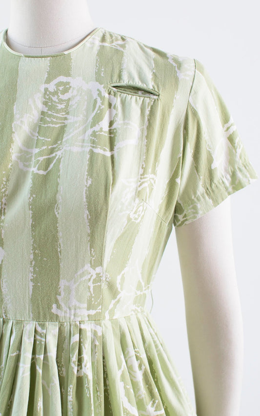 $50 & UNDER SALE || 1950s Rose Striped Cotton Dress | medium