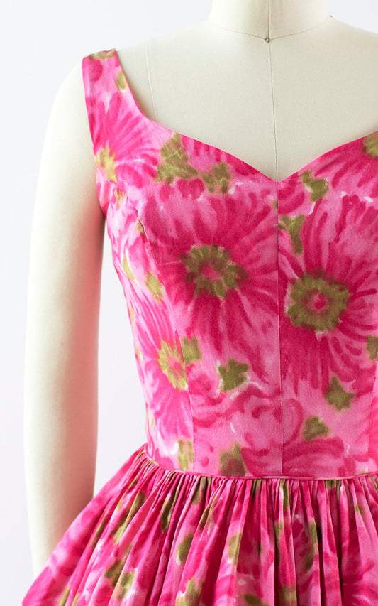 1950s Hot Pink Floral Cotton Sundress | x-small