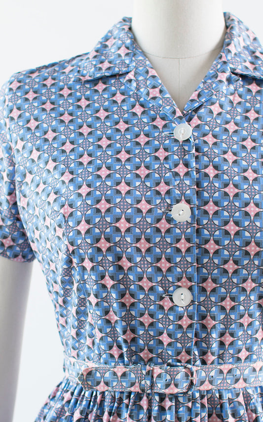 1950s Geometric Polka Dot Cotton Shirt Dress | medium