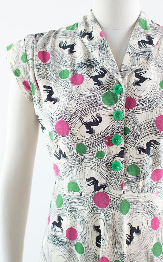 1940s Horse Novelty Print Polka Dot Shirt Dress | small