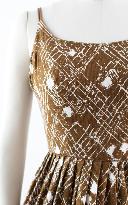 π SPRING CLEAROUT π 1950s Plaid Printed Brown Cotton Spaghetti Strap Sundress | small