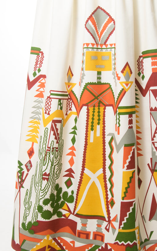 1970s Southwestern Folk Novelty Border Print Maxi Skirt | small