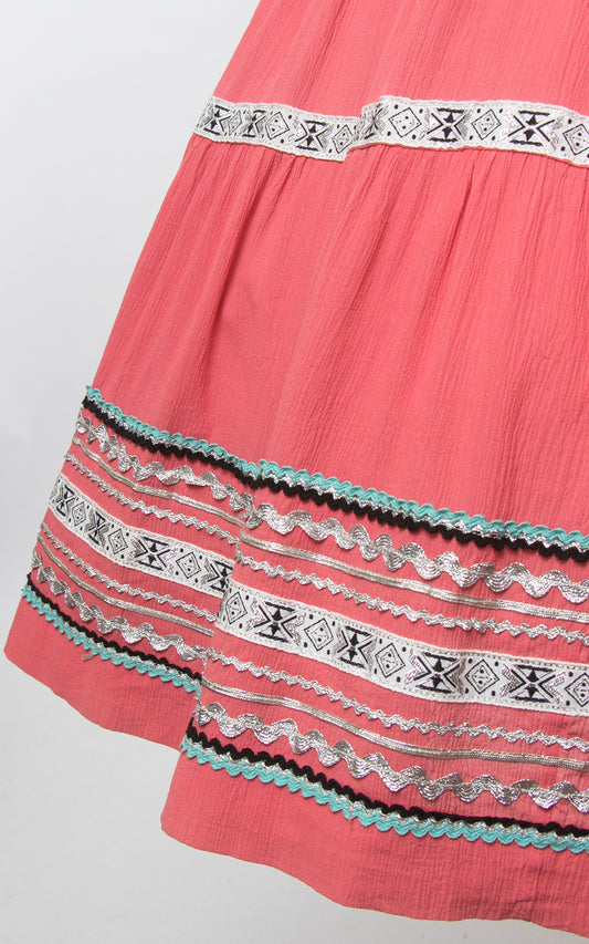 💐 SPRING CLEAROUT 💐 1950s Pink Ric Rac Patio Circle Skirt | small