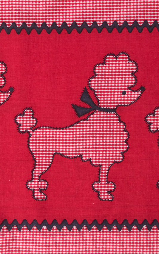 1950s Poodle Novelty Border Print Red Cotton Skirt | medium