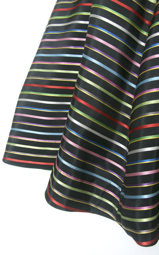 1950s Rainbow Striped Black Taffeta Skirt | medium