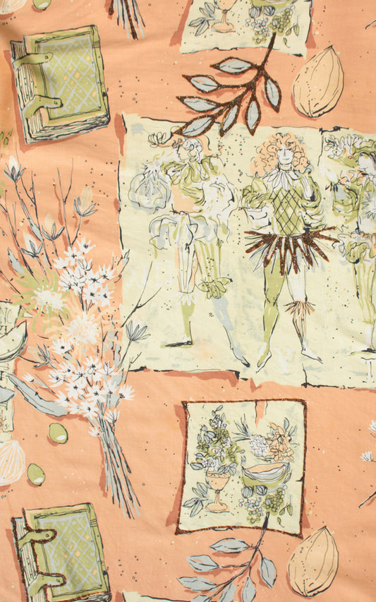 1950s Peach Floral Music Novelty Print Cotton Circle Skirt | small