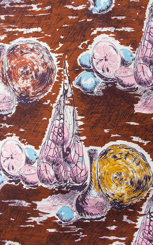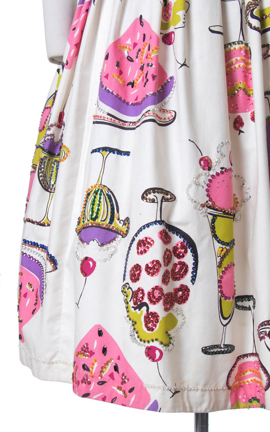 1950s Dessert Novelty Print Beaded Cotton Pleated Skirt | medium