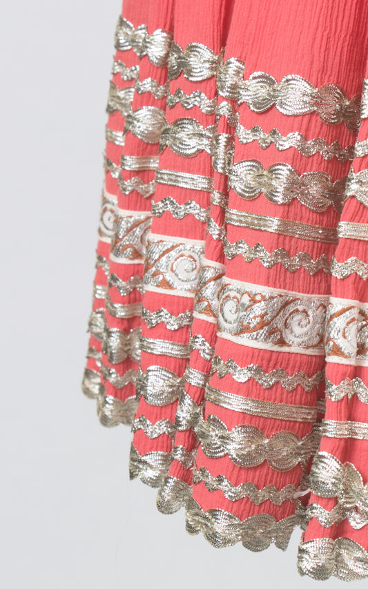 1950s Pink Silver Ric Rac Patio Circle Skirt | medium