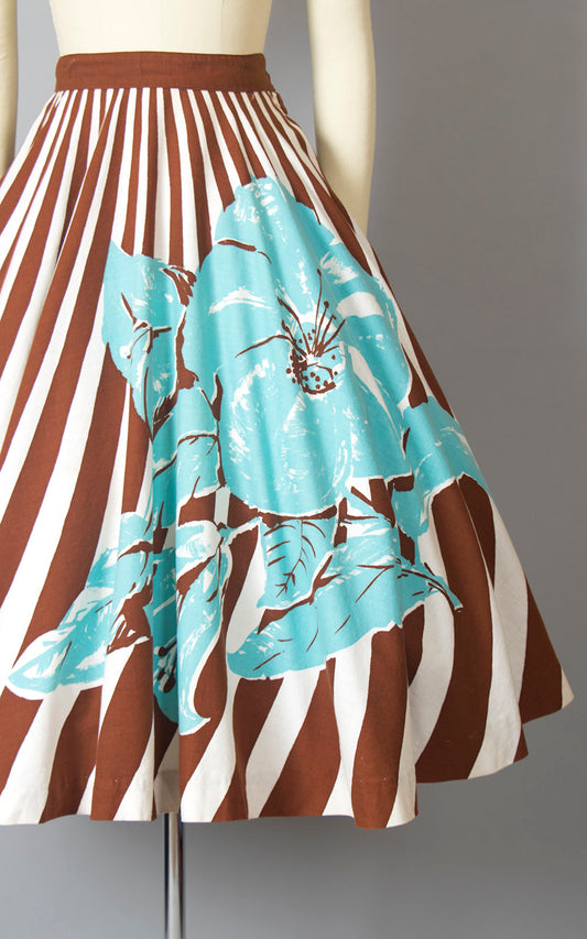 1950s Oversized Floral Striped Cotton Circle Skirt | small