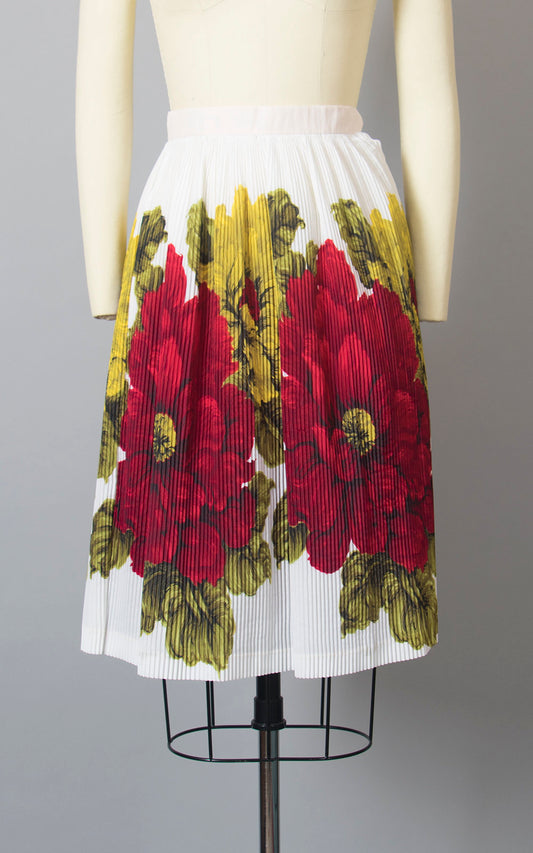 $50 & UNDER SALE || 1960s Oversized Floral Border Print Fortuny Pleated Skirt | xx-small