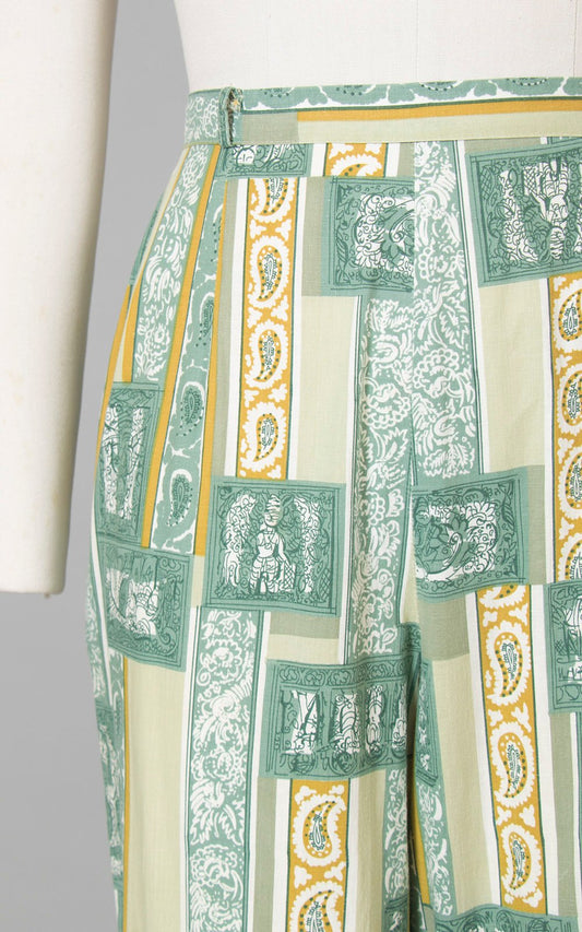 $50 & UNDER SALE || 1960s Geometric Novelty Print Green Cotton Capris | small