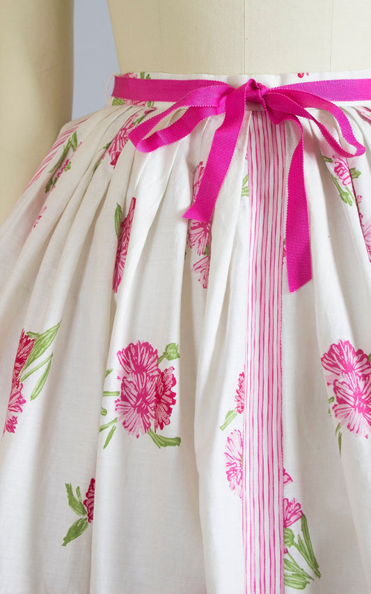 1950s Pink Floral Striped White Cotton Skirt | x-small/small
