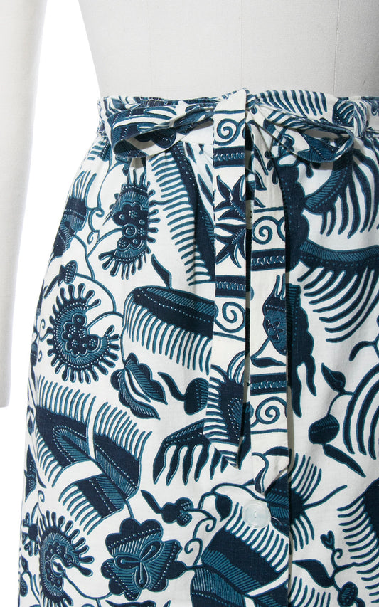 $50 & UNDER SALE || 1970s Batik Floral Blue Cotton Button Up Skirt | medium