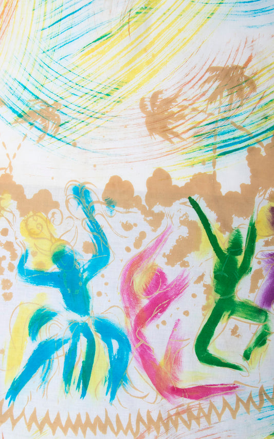$50 & UNDER SALE || 1950s Mexican Hand Painted Dancers Novelty Print Cotton Circle Skirt | small
