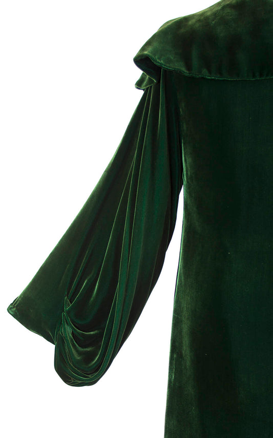1930s Dark Green Silk Velvet Draped Sleeves Coat | small/medium