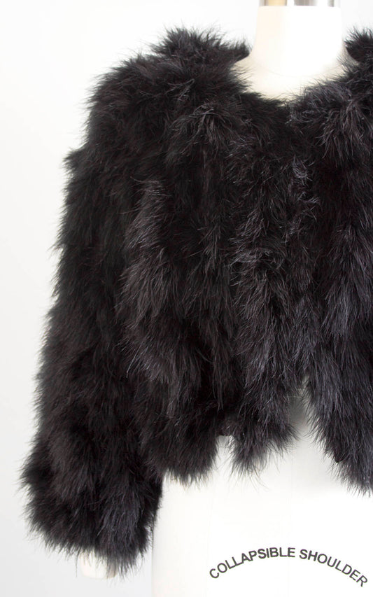 1990s Black Marabou Feather Cropped Jacket | medium/large/x-large