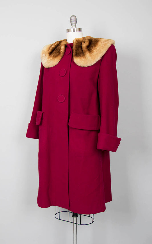 1940s Burgundy Wool Mouton Lamb Fur Collar Coat | medium/large