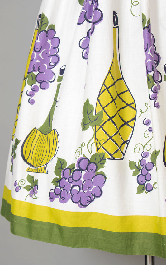1950s Grapes Wine Novelty Border Print Cotton Skirt | small
