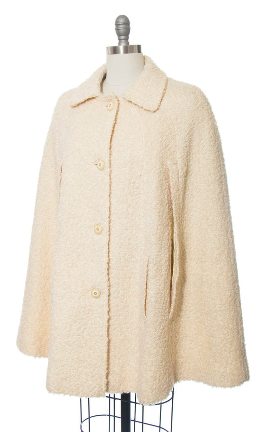 1960s Cream Bouclé Wool Cape with Pockets | small/medium