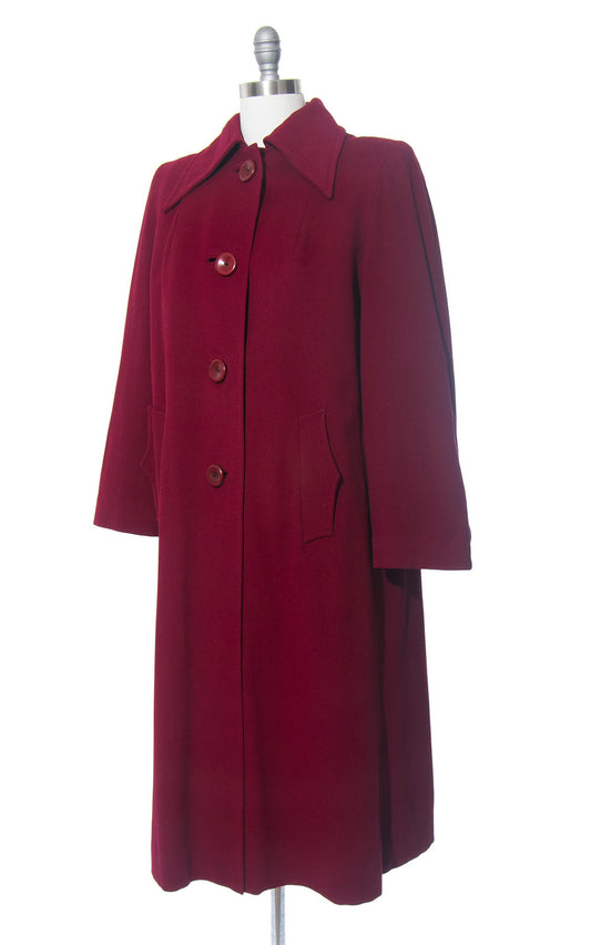 1940s Burgundy Wool Twill Coat with Removable Liner | medium/large