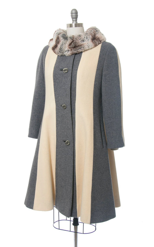 1960s Lilli Ann Striped Wool Fur Collar Princess Coat | medium/large