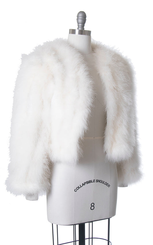 1970s White Marabou Feather Cropped Jacket | medium