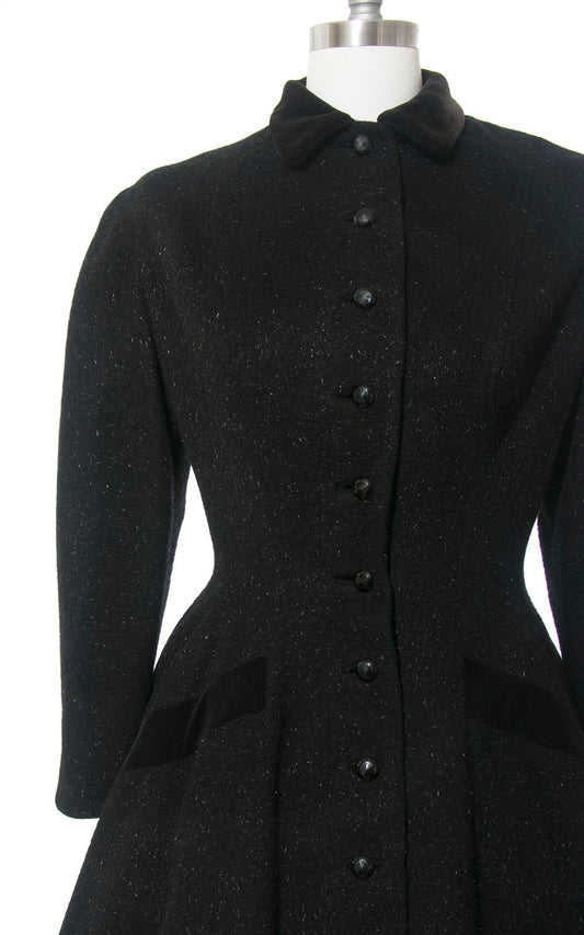 1950s Lilli Ann Black Wool Mohair Princess Coat | medium