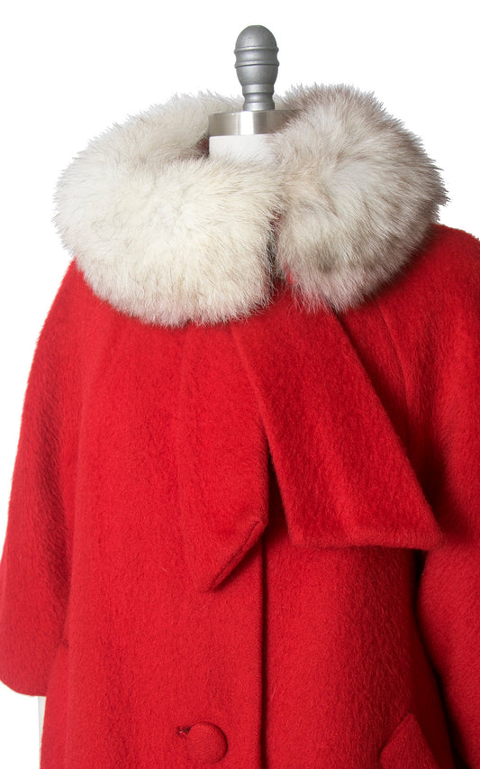 1960s Lilli Ann Red Mohair Wool and Fox Fur Collar Swing Coat | large/x-large