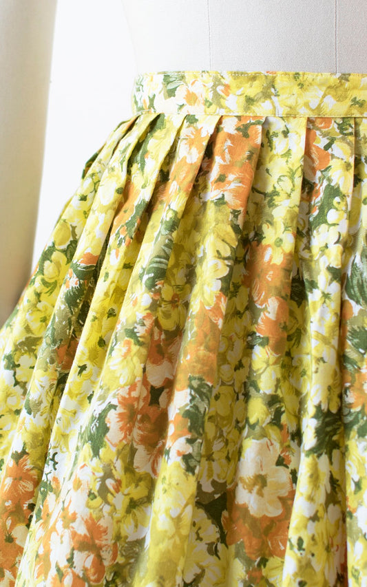 1950s Yellow Floral Cotton Pleated Skirt | small