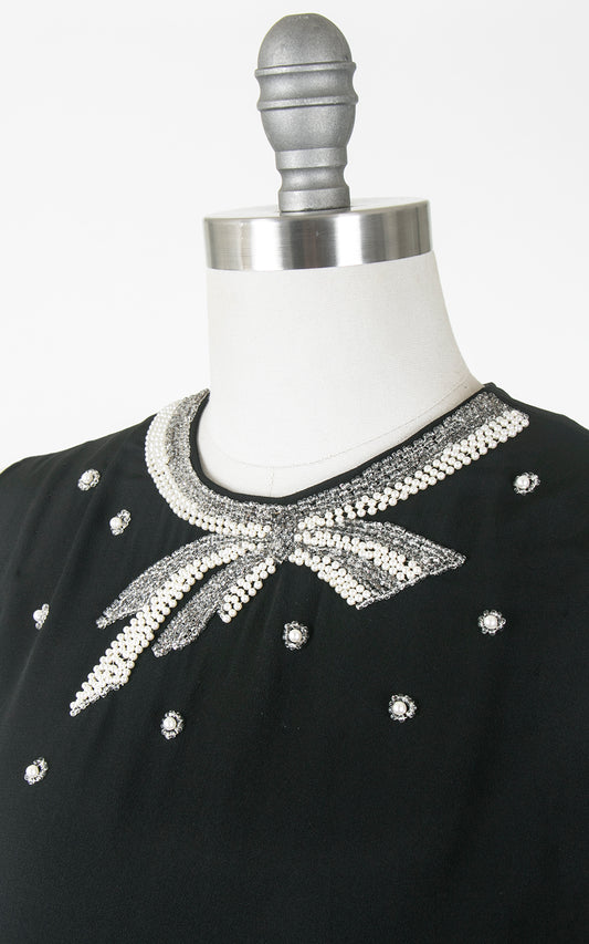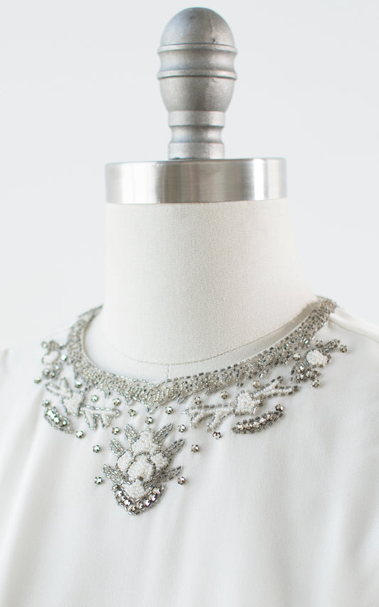 1940s 1950s Beaded Rhinestone White Rayon Blouse | medium
