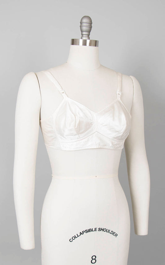 1940s 1950s Cream Satin Bullet Bra | 30B/32B/x-small