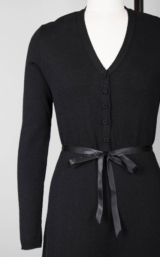 1970s Black Knit Wool Wide Leg Jumpsuit | medium
